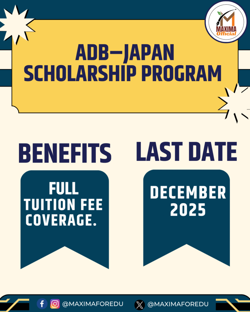 1.Citizenship: Must be a national of an ADB borrowing member country (also eligible under Japan’s Official Development Assistance criteria). 2.Admission: Must have secured admission to a master’s degree program at a designated participating institution.