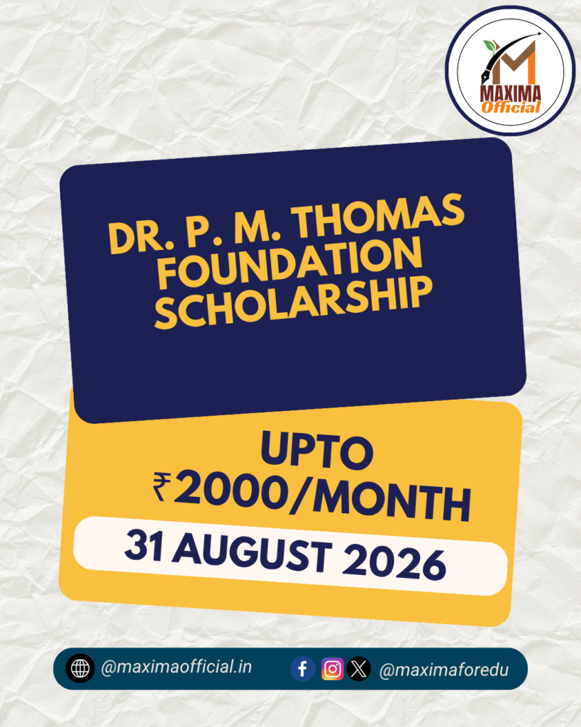 The Dr. P. M. Thomas Foundation Scholarship is a need-based financial assistance program designed to support academically deserving students from financially weaker sections. The foundation focuses on holistic student development, including academic excellence, personality growth, and strong value systems. Moreover, the scholarship aims to remove financial barriers and empower students to pursue education from Class 8 to postgraduate and doctoral levels.