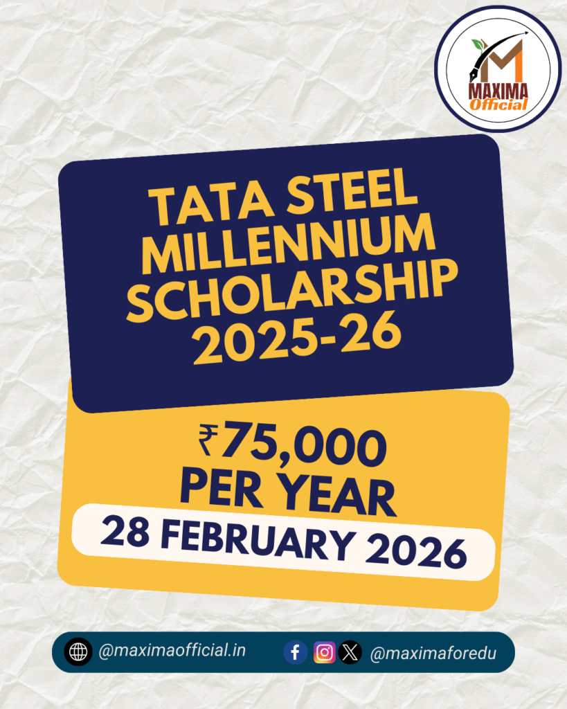 The Tata Steel Millennium Scholarship 2025-26 is a financial assistance program launched by Tata Steel to support the higher education of students from employee families. The scholarship aims to reduce financial pressure and encourage meritorious students to pursue professional and technical courses. Through this initiative, Tata Steel promotes education, skill development, and academic excellence among eligible candidates. Selected students receive annual financial support to cover tuition fees and other academic expenses.